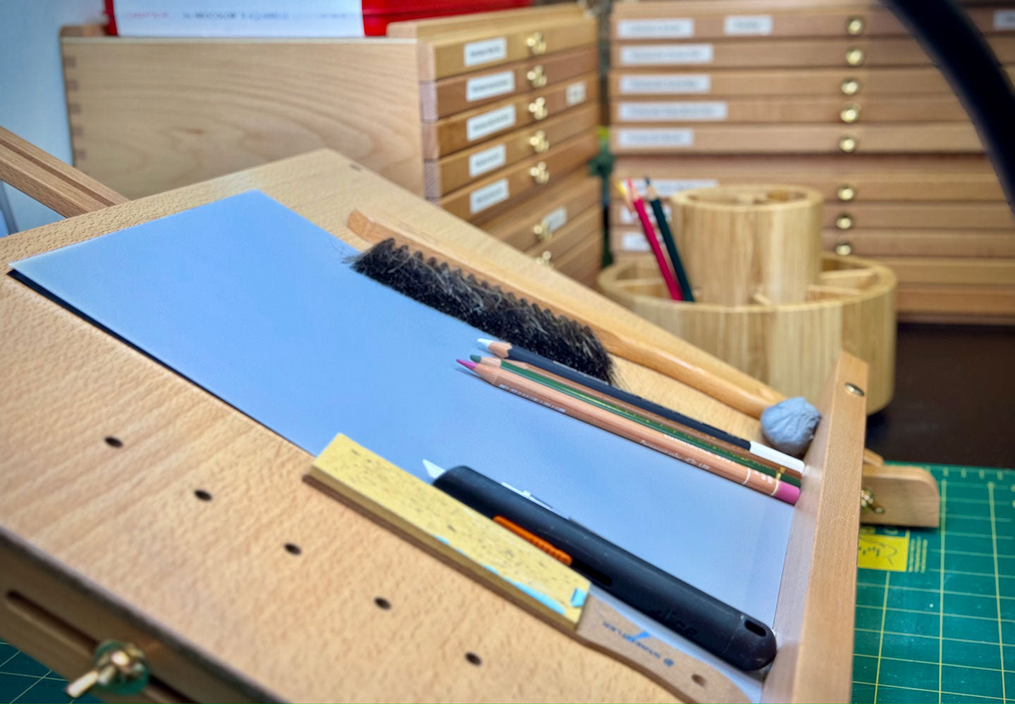 I work exclusively with professional artist-grade, highly light-fast coloured pencils, on archival acid-free surfaces (mostly Drafting Film), which guarantee lasting quality for many lifetimes.