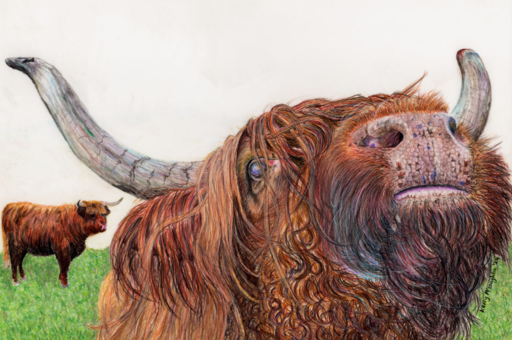 Straight from the picturesque countryside of Scotland, this curious and rustic Highland Cow grabbed my attention as it leant towards the camera, as if taking a selfie. I included an additional Coo in the background to give him/her unmistaken identity, since the angle was a little abstract. I love the long, wavy, shaggy coat, often seemingly compromising their vision.