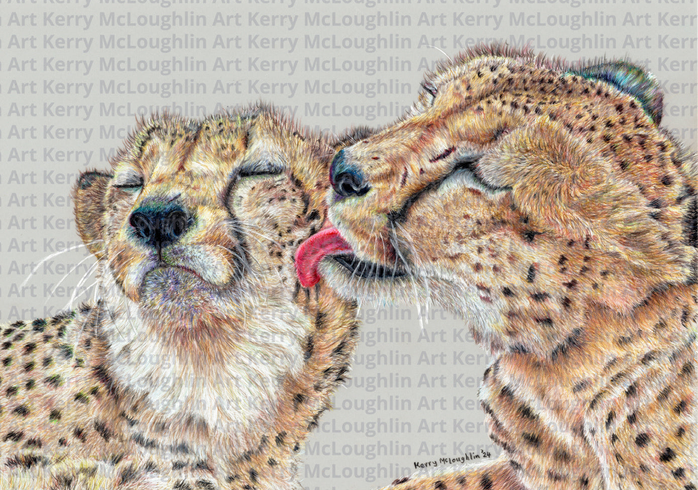 I loved the feeling of family bonding and companionship felt when viewing these two young cheetahs, one lovingly cleaning the other. Unlike nearly all of my other drawings, there were no breathtaking eyes to draw me in, but the simplicity of a blissful and heart-warming grooming session portrayed the mood perfectly.